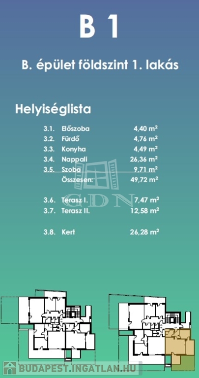 49, 54, 71, 80 nm2 méretű ingatlanok közül lehet választani. Földszinti lakások saját terasszal és kertrésszel míg az 1. és 2. emeleti lakások nagy teraszokkal rendelkeznek.