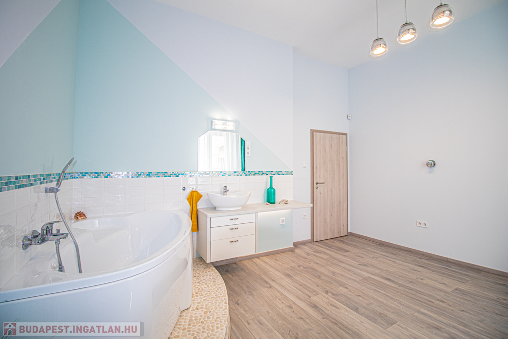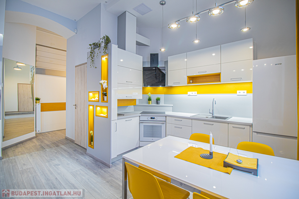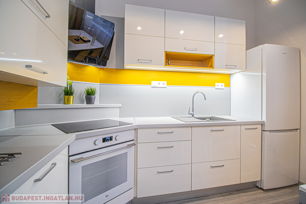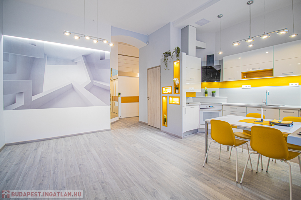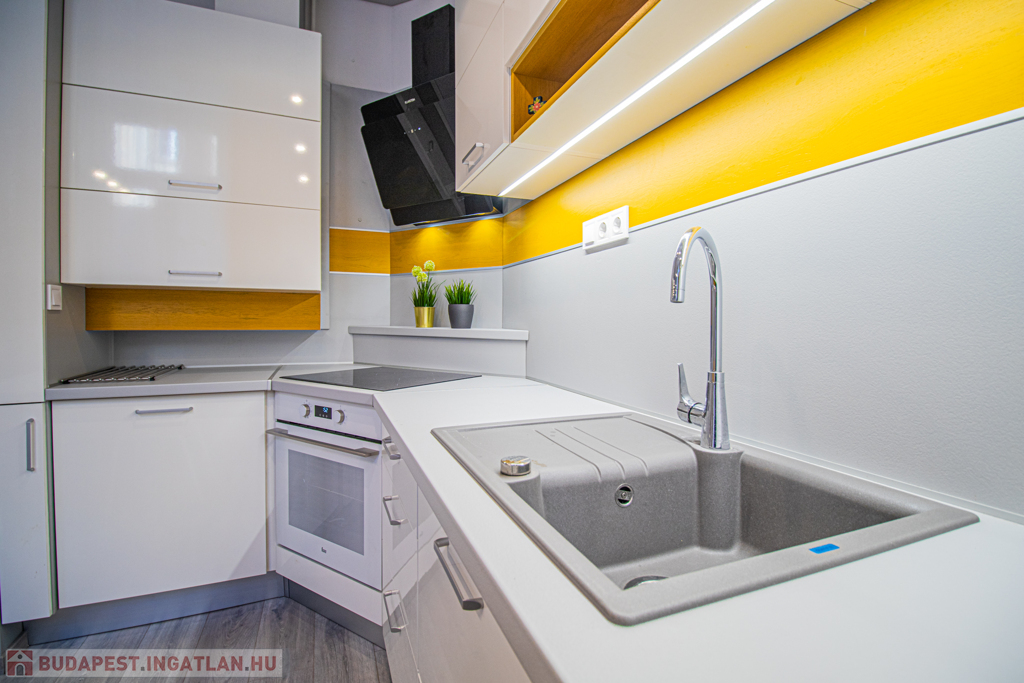Eladó a XI. kerületben a Gellérthegy lábánál egy jó állapotú, polgári társasházban lévő amerikai konyhás nappali + 2 hálószobás, teljes mértékben műszakilag és esztétikailag is magas minőségben felújított, DNY-i fekvésű, 2 fürdőszobás, jó beosztású lakás.