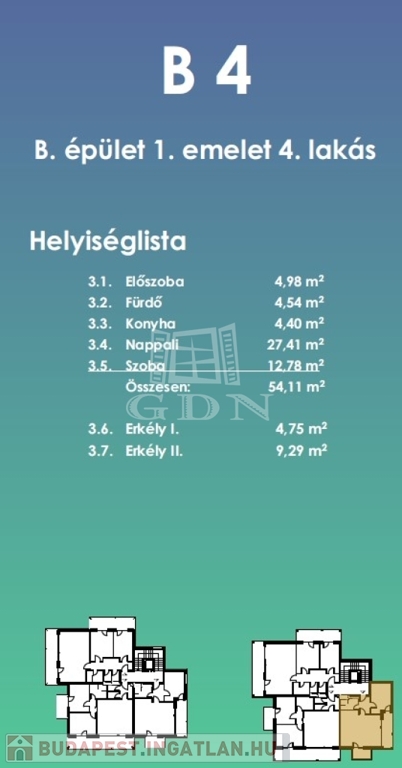 49, 54, 71, 80 nm2 méretű ingatlanok közül lehet választani. Földszinti lakások saját terasszal és kertrésszel míg az 1. és 2. emeleti lakások nagy teraszokkal rendelkeznek.