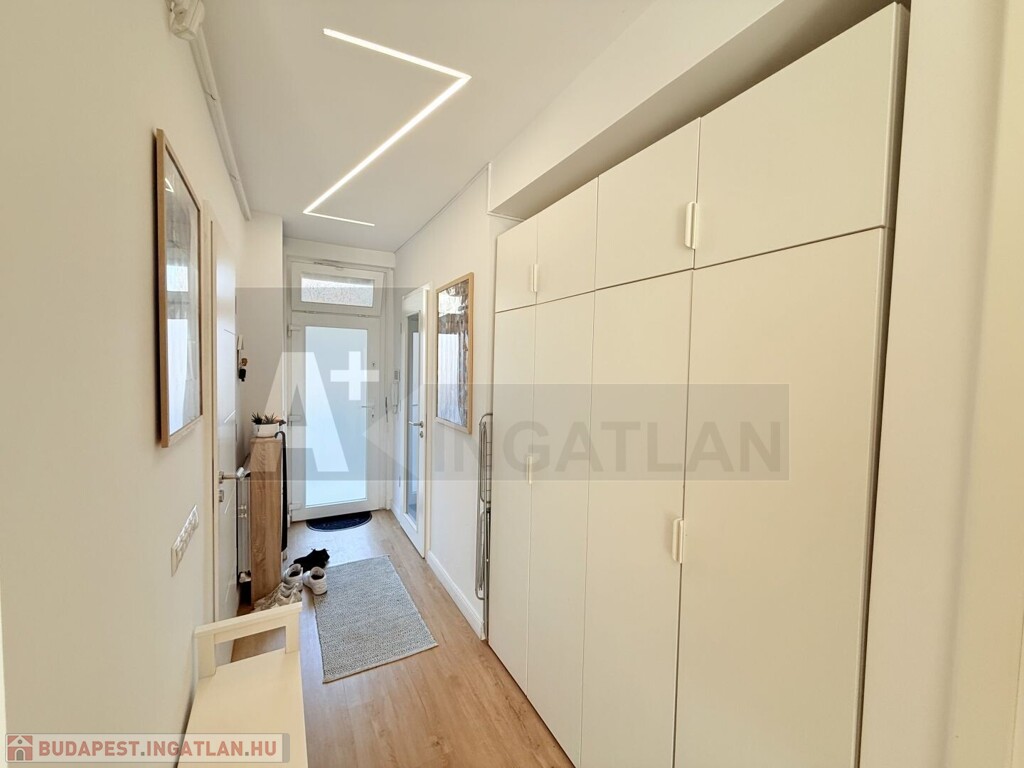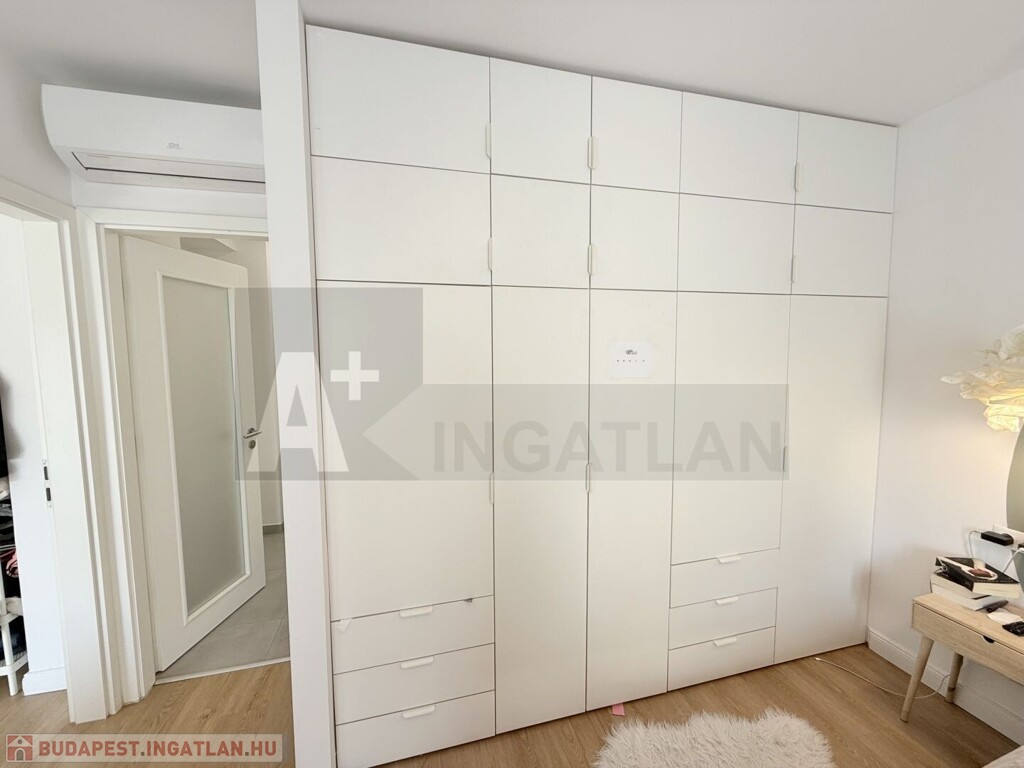 A vételár részét képezik : a gépesített konyhabútor és a méretre gyártott , 3 gardrób szekrény is , amelyek illeszkednek a lakás egységes stílusához.