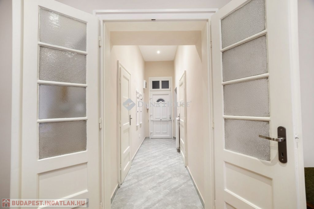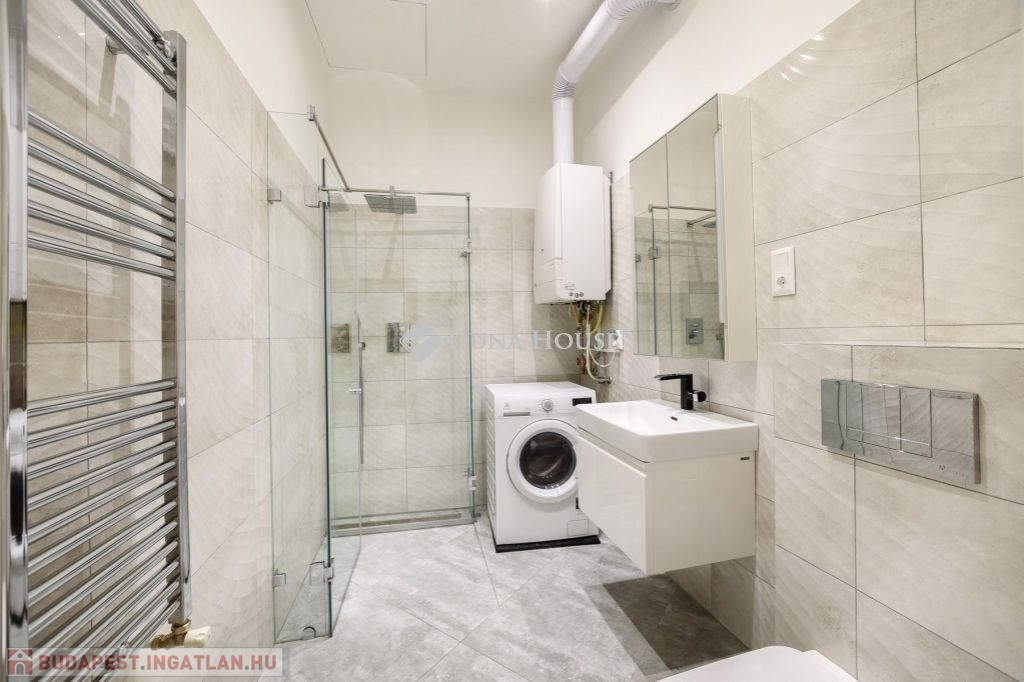 Minőségi burkolatok, Teka csaptelepek, és egy egyedi tervezésű zuhany került beépítésére. Minden háztartási gép Electrolux márkájú: a mosó-szárítógép, az indukciós főzőlap, a sütő, a mosogatógép, a hűtő, és a páraelszívó egyaránt. A fűtésről cirkó gáz kazán gondoskodik, a meleg vizet takarékos villany bojler szolgáltatja. A lakás felújítás teljes körű volt, igazi kényelmes otthont varázsoltak belőle. A berendezés megegyezés tárgyát képezi.A környék ellátottsága kitűnő, akárcsak a közlekedés. Rengeteg bevásárlási lehetőség, étterem, kávézók, Gellért fürdő, színház és vég nélkül sorolhatnánk mi minden elérhető a hangulatos környéken. A nagy méretű háló ablakából láthatjuk a Szabadság hidat és a Dunát is.Amennyiben olyan otthont keres ahová csak költöznie kell, és mindezt kiváló környéken, akkor megtalálta!