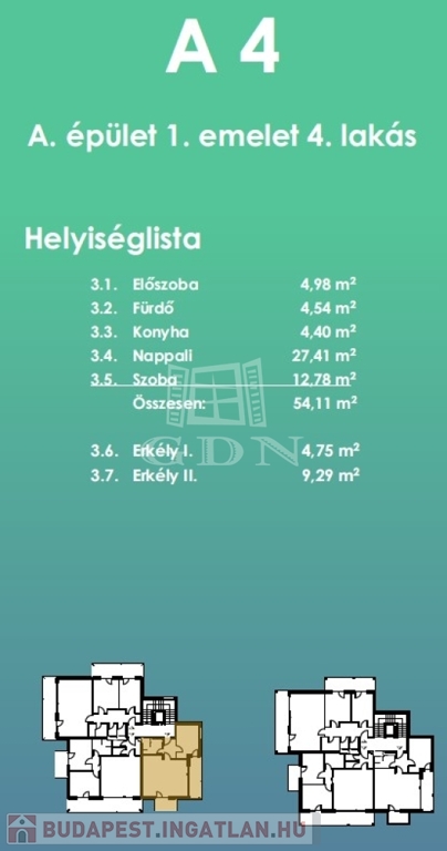 49, 54, 71, 80 nm2 méretű ingatlanok közül lehet választani. Földszinti lakások saját terasszal és kertrésszel míg az 1. és 2. emeleti lakások nagy teraszokkal rendelkeznek.