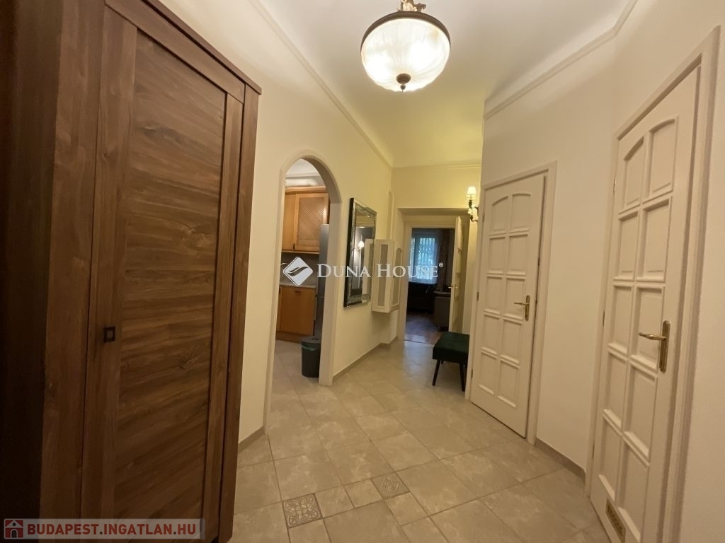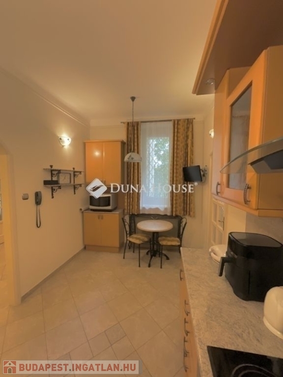 magasföldszinten található, 74 négyzetméteres lakás ablakai kertre néznek,előttük közvetlenül zöld lombú fák állnak, így reggelente madárcsicsergésre ébredhetünk. Az ajtón belépve tágas terek fogadnak: nagy, kényelmes szobák, jól felszerelt konyha étkezővel. A konyha nagyméretű ablaka a ház belső udvarára néz. A sarokkádas fürdőszoba tágas, letisztult és praktikus. A lakásban található még egy 2 nm-es, ablakos helyiség, amely kiválóan alkalmas akár dolgozószobának, vagy gardróbnak is. Az ingatlan kisebb családnak, pároknak is kényelmes otthona lehet, de akár irodává is átalakítható.A nyári melegben is kellemesen hűvös lakásban jelenleg nincs klíma, de ennek kiépítése is megoldható.