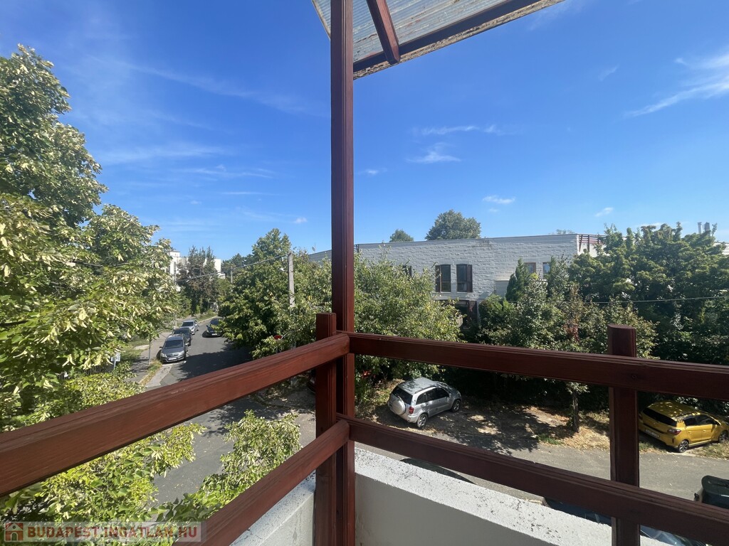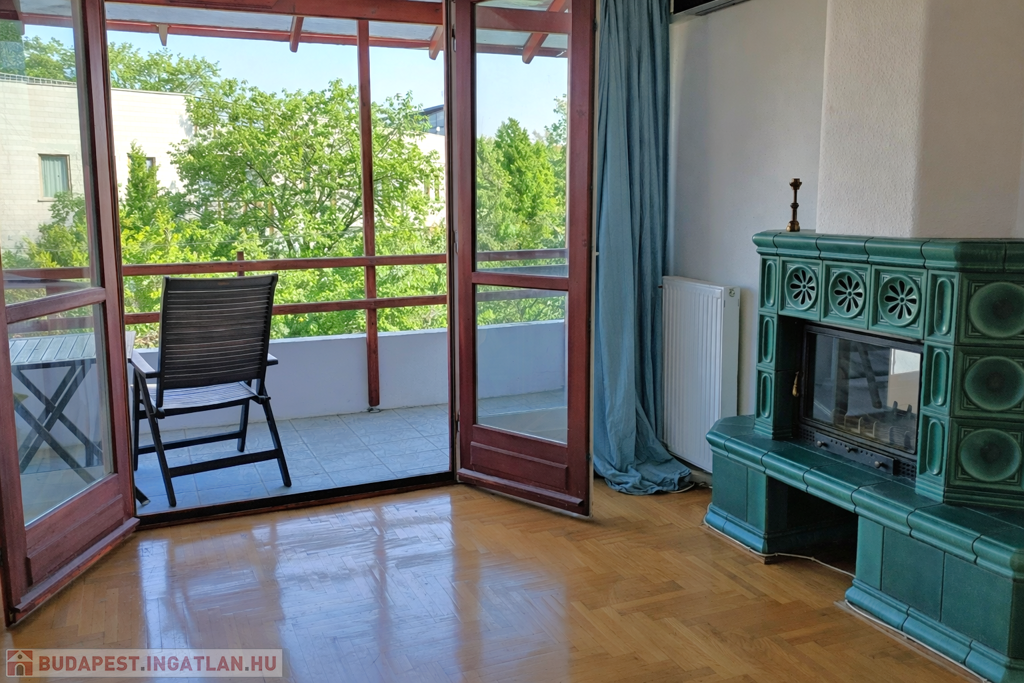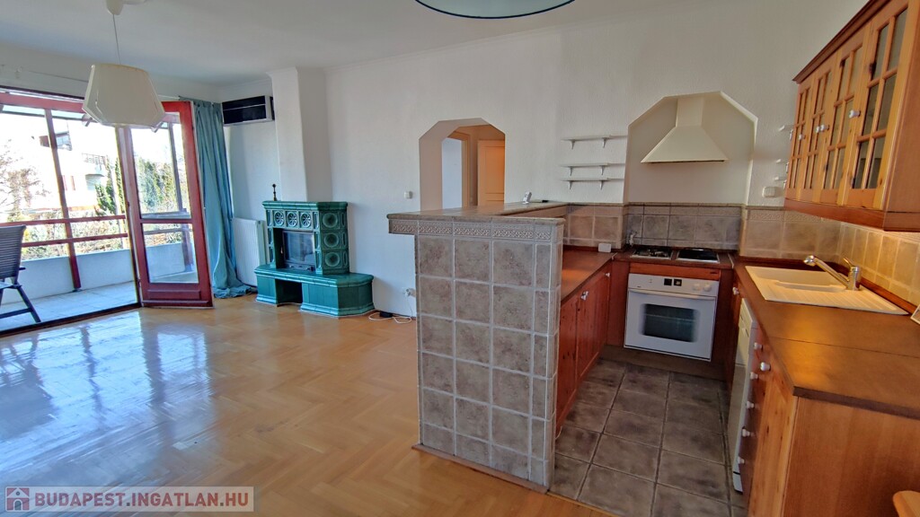 The TOP floor, BRIGHT apartment has a beautiful view of the QUIET, green environment. The living room with American kitchen is east facing, and through the glass patio door that fills the entire wall, we can exit to the 7 sqm balcony, from which a partial panorama opens.
