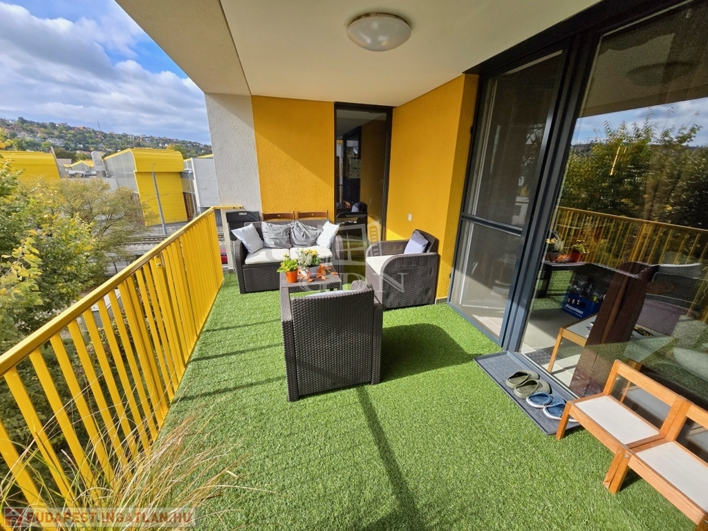 XI. kerület Albertfalván, a TETRIS HÁZ lakóparkban egy gépesített és bútorozott konyhával rendelkező, délkeleti fekvésű, 65m2-es hasznos alapterületű+11m2 fedett erkélyes, nappali + 2 hálószobás, újszerű lakást kínálunk megvételre!