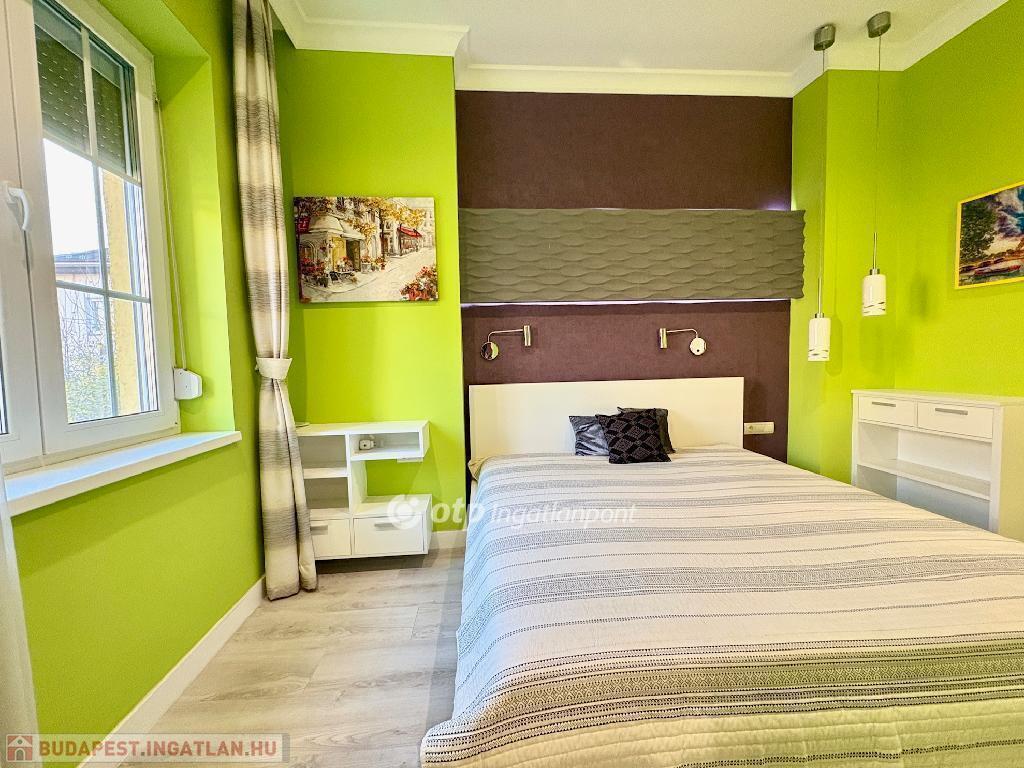 A lakás amerikai konyhás nappalija és egyik szobája a kis átmenőforgalmú nyugodt utcára, míg hálószobája a csendes belső udvarra néz.