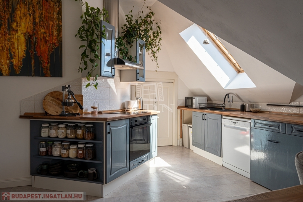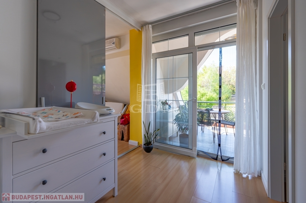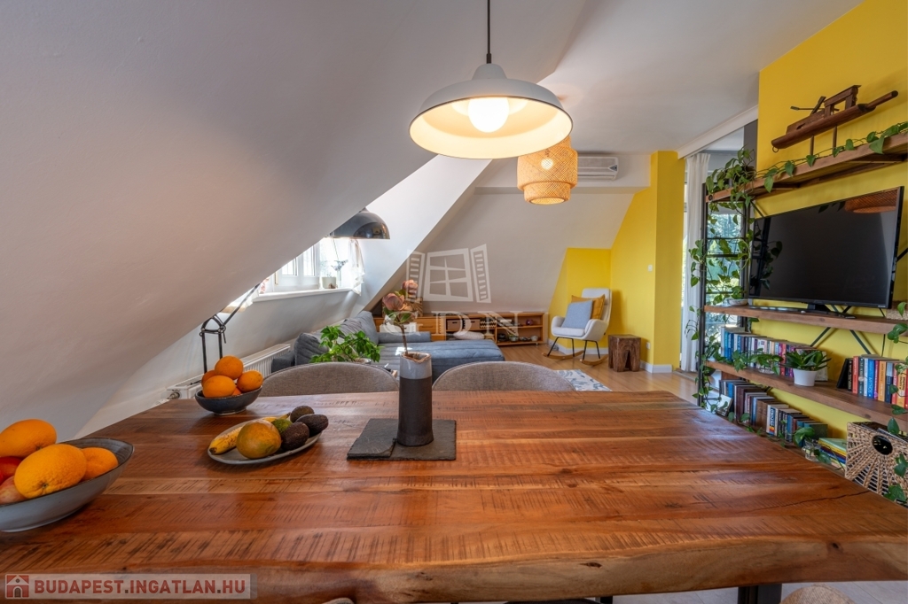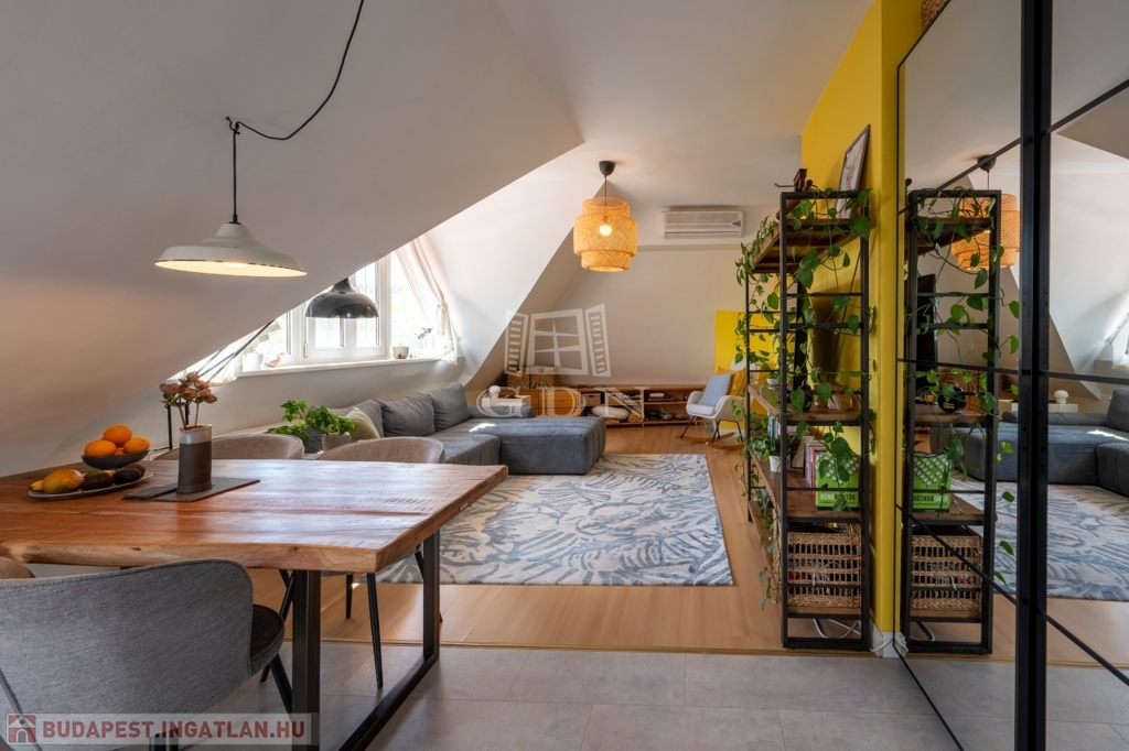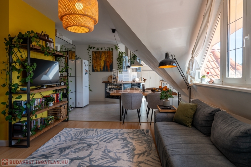 PANORÁMÁS tetőtéri, 74 nm-es lakás amerikai konyhás nappalival és 2 hálószobával (egyik szoba jelenleg 2 kisebbé alakítva).