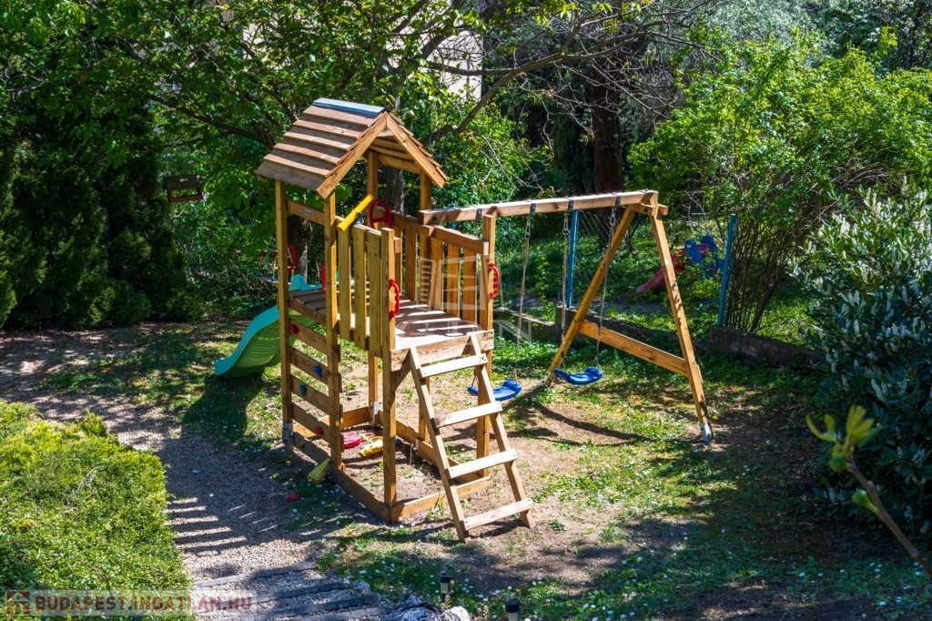 A ház kertjében gyermek játszó és MEDENCE található, valamint egy SZAUNA.