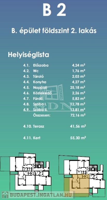 49, 54, 71, 80 nm2 méretű ingatlanok közül lehet választani. Földszinti lakások saját terasszal és kertrésszel míg az 1. és 2. emeleti lakások nagy teraszokkal rendelkeznek.