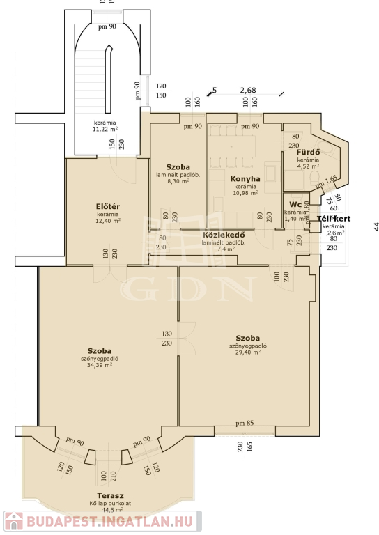 A lakáshoz tartozik egy 13 nm-es tároló is.