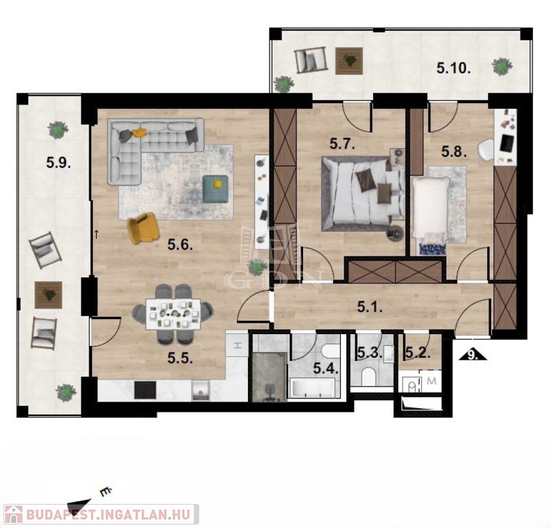 49, 54, 71, 80 nm2 méretű ingatlanok közül lehet választani. Földszinti lakások saját terasszal és kertrésszel míg az 1. és 2. emeleti lakások nagy teraszokkal rendelkeznek.