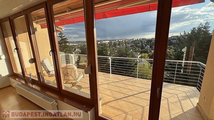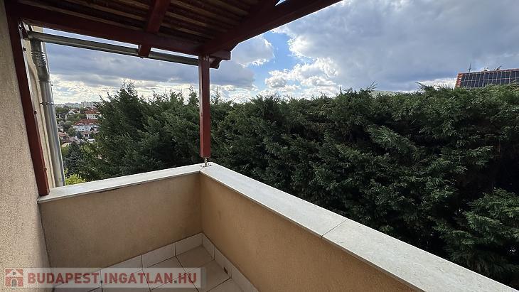 A nappaliból nyílik egy 15 nm-es délnyugati fekvésű, gyönyörű panorámával rendelkező, félig fedett, motoros árnyékolóval ellátott terasz, illetve szintúgy a nappaliból közelíthetjük meg az oldalsó, nyugati fekvésű 5 nm-es, teljesen fedett erkélyt.