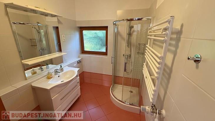 Található még lent egy saját 23 nm-es tároló/ garzonlakás, melynek ára 15 M Ft. Ez jelenleg egy lakható kislakásként üzemel, ugyanis egy 4 nm-es fürdőszoba is kialakításra került benne. Külön megközelíthető, így a jövőben ennek a kiadása is opció lehet.