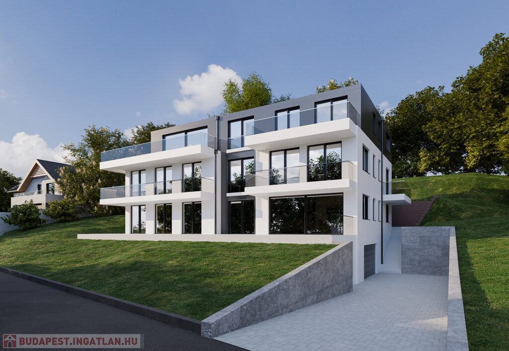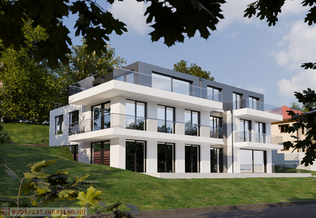 A 4 lakásos, téglaépítésű, prémium kategóriás épület egy ~1500 nm-es, délkeleti tájolású, panorámás telken került megépítésre.