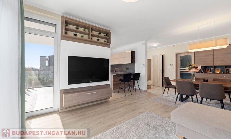 Az ingatlan 2019-ben épült, modern műszaki tartalommal és igényes kivitelezéssel. A lakás világos, jól tagolt terekkel rendelkezik, minden szobához saját terasz vagy erkély kapcsolódik.