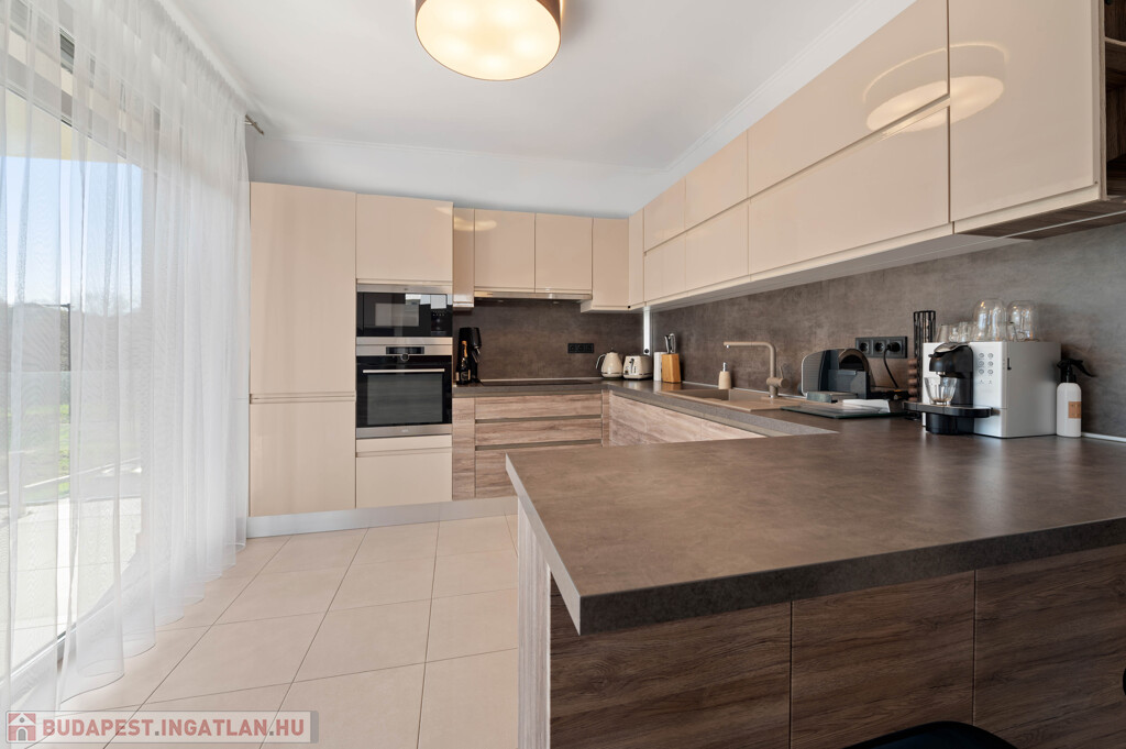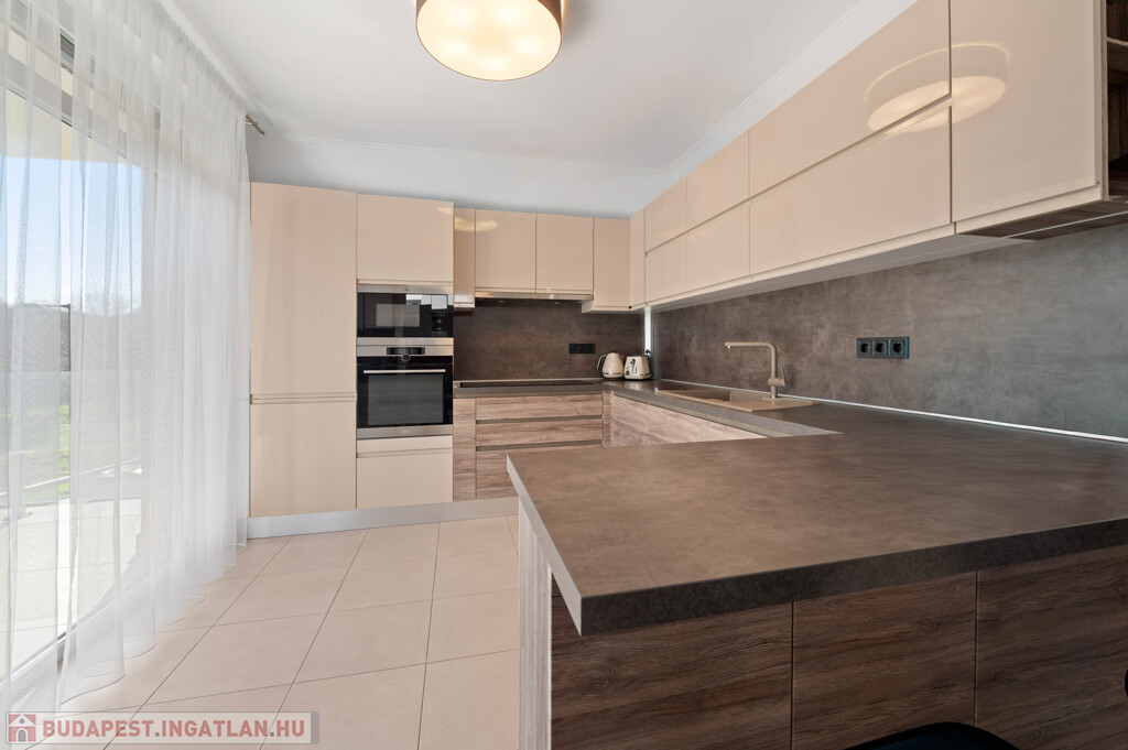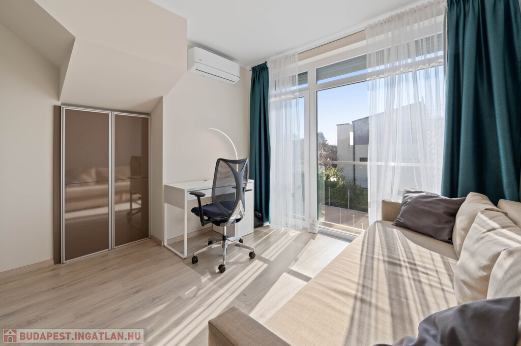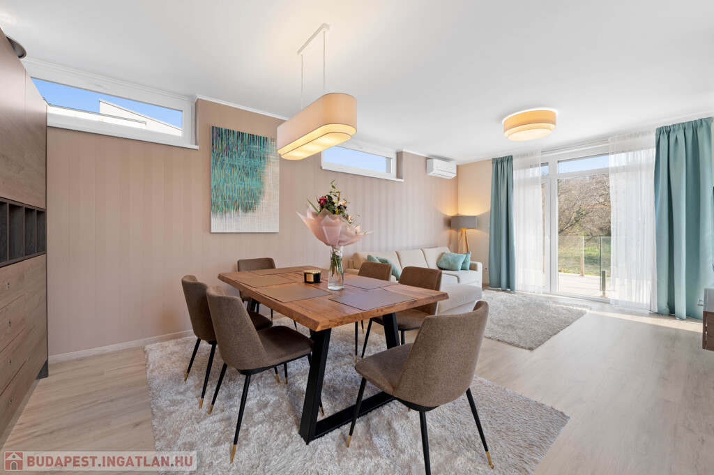XI. kerület egyik legkedveltebb, kertvárosias részén, Madárhegyen kínálunk megvételre egy különleges adottságokkal rendelkező, belső kétszintes, 124 m²-es prémium lakást.