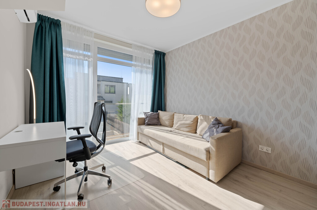 A lakás egy 4 lakásos, modern társasházban található. Nyugodt, rendezett lakóközösség és csendes, kertvárosias környezet jellemzi.
