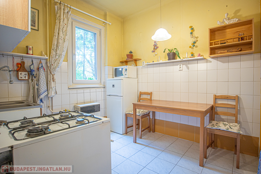 Eladó a XI. kerületben a Bikás park közelében, egy jó állapotú társasházban lévő, 43nm-es, jelenleg 1 szoba+hall-os, étkező konyhás, DNY-i és ÉK-i fekvésű lakás.