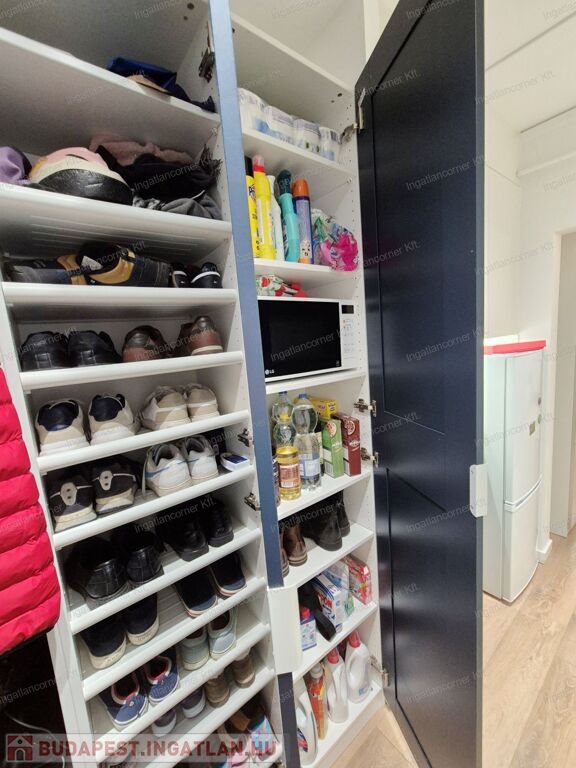 •Számtalan beépített tároló: előszobabútor cipőtárolóval és kabáttartóval, kamraszekrény, hálószobai tükrös gardróbszekrény