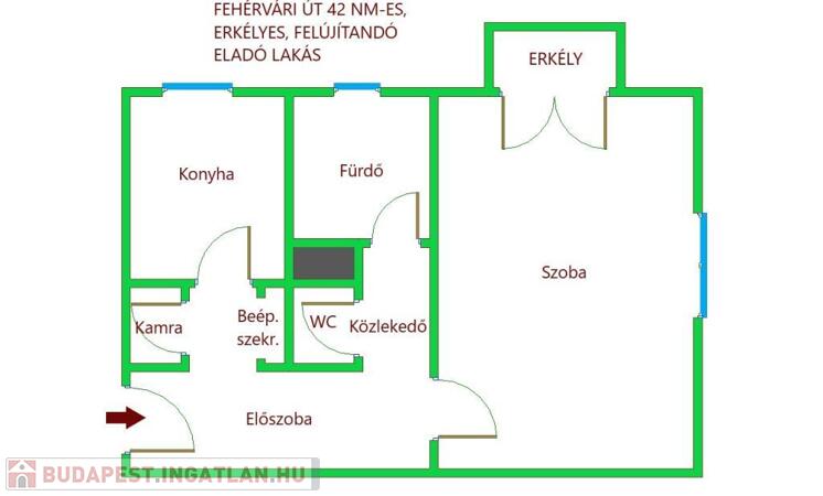 A XI. kerületben a Fehérvári úton kínálunk megvételre egy 40 m-es, első emeleti, erkélyes, felújítandó téglalakást egy 16 lakásos, rendezett társas házban, barátságos lakóközösséggel.