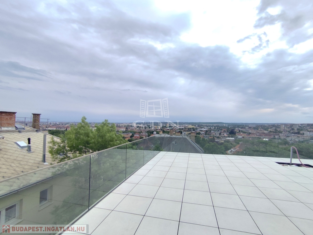Eladó a Gellért-hegy délnyugati oldalán, csendes zöldövezetben egy kétszintes, 154 m²-es, örökpanorámás penthouse saját 100 m²-es tetőterasszal és 100 m²-es privát garázzsal. A lakás egy mindössze 5 lakásos, vadonatúj társasház legfelső szintjén található.