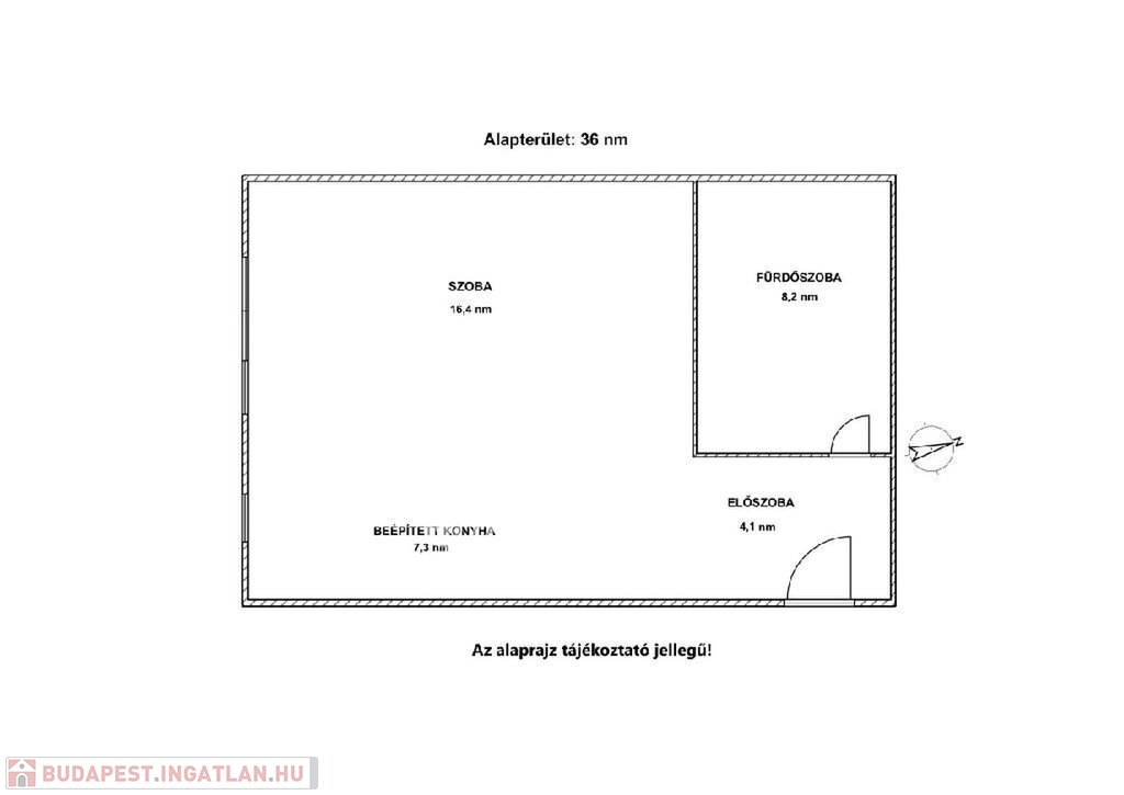 Nappali, előszoba, fürdőszoba, valamint konyha áll rendelkezésre a kiváló elrendezésű lakásban.