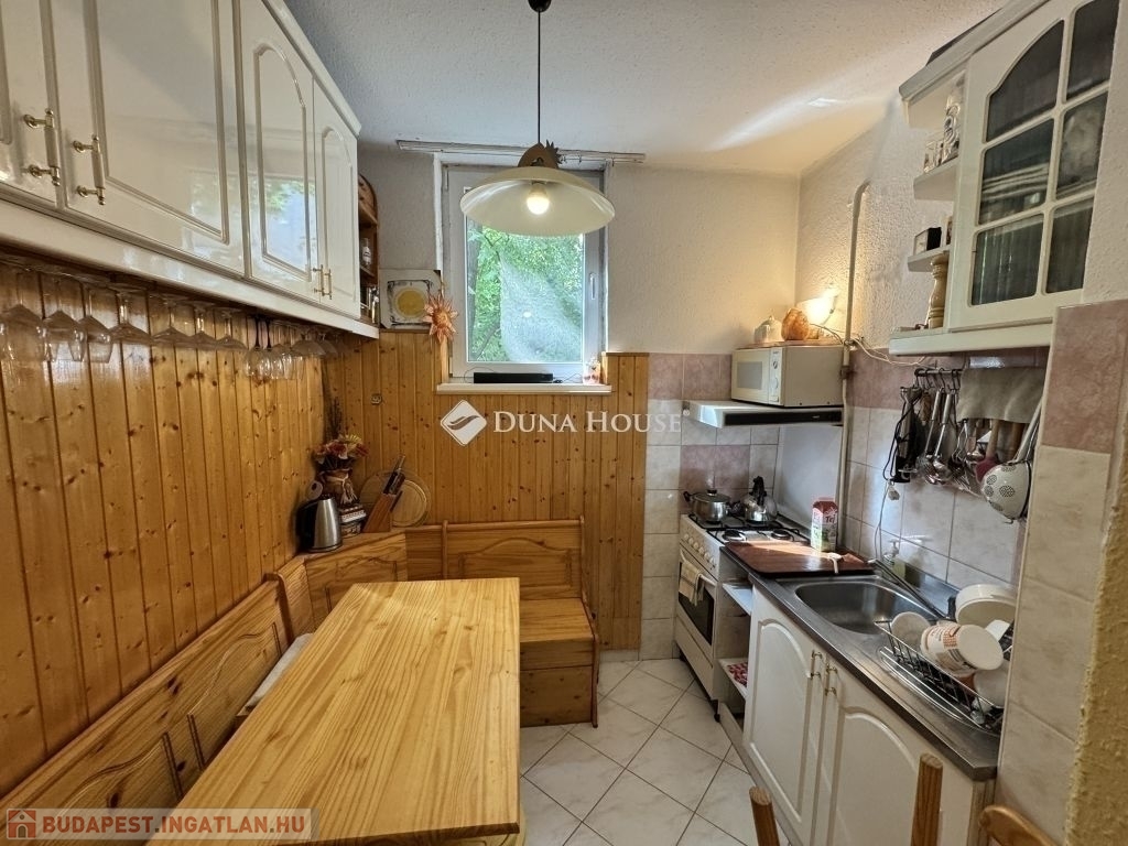 Zöldövezeti nyugalom, költözhető állapotban - Sasadon eladó ez a kivételes ingatlan!Sasad egyik legszebb, zöldövezeti részén, fás környezetben kínálunk megvételre egy világos, jó állapotú kétszobás lakást, egy gondozott, négyszintes társasház első emeletén.A lakás 50 négyzetméteres, melyhez egy 4 négyzetméteres beépített loggia kapcsolódik. Két szobája külön és egybe is nyílik, így jól alakíthatóak akár egy párnak, akár kisebb családnak, de otthoni irodát keresőknek is ideális választás lehet. A konyha és a fürdőszoba saját ablakkal rendelkezik, szellőztethető, a WC pedig a fürdőtől szeparálva, külön helyiségben található. A lakásban beépített előszobai szekrények és egy praktikus kamraszekrény is segíti a tárolást.Az ingatlan műszaki állapota jó, az évek során több felújítás is történt: korszerű bukó-nyíló műanyag ablakokra cserélték a nyílászárókat, felújították a fürdőszobát és a WC-t. A szobák parkettásak, a többi helyiség hidegburkolattal ellátott. A lakás állapota lehetővé teszi a gyors, akár azonnali költözést, komolyabb felújítási igény nélkül.Az épület a hetvenes években épült, de műszaki és esztétikai állapota kifejezetten jó. A lakás értékét emeli a földszinten található közös használatú tároló és a zárható biciklitároló. A házközösség rendezett, barátságos. A közös költség kedvező: mindössze 17.500 Ft havonta.A környék infrastruktúrája kiváló: a közelben bevásárlási lehetőségek, egészségügyi szolgáltatások, iskola, óvoda is megtalálható, miközben Gazdagrét, Kelenföld, Budaörs és a 12. kerület is könnyedén elérhető a közeli tömegközlekedéssel.Az ingatlan 1/1 tulajdonban van, tehermentes, így rövid határidővel költözhető. A kedvező fekvés, a panoráma, a zöld fás környezet, a praktikus elrendezés, a loggia, a világosság, valamint a jól karbantartott ház együttese igazán vonzóvá teszi ezt az ingatlant akár első otthonnak, akár befektetésnek is remek választás.