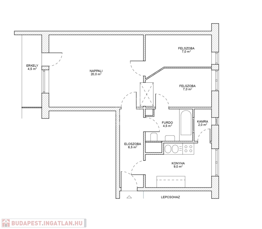 !XI. Ker Bach csomopont közelében 56nm-es 1+2fél szobás, üres, erkélyes, közepes állapotú lakás eladó.