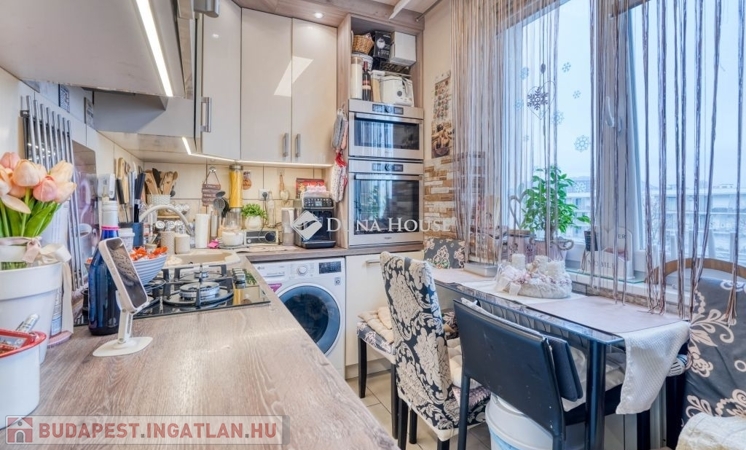 Új, beépített, gépesített konyha Whirlpool prémium háztartási gépekkel (sütő, mosogatógép, mikró, elszívó mind garanciális), teljes esztétikai és műszaki megújítás, új burkolatok, radiátorok cseréje modern, energiatakarékos típusokra, beépített loggia, beépített szekrények, villanykandalló, kamerarendszer a lakásban is kiépítve