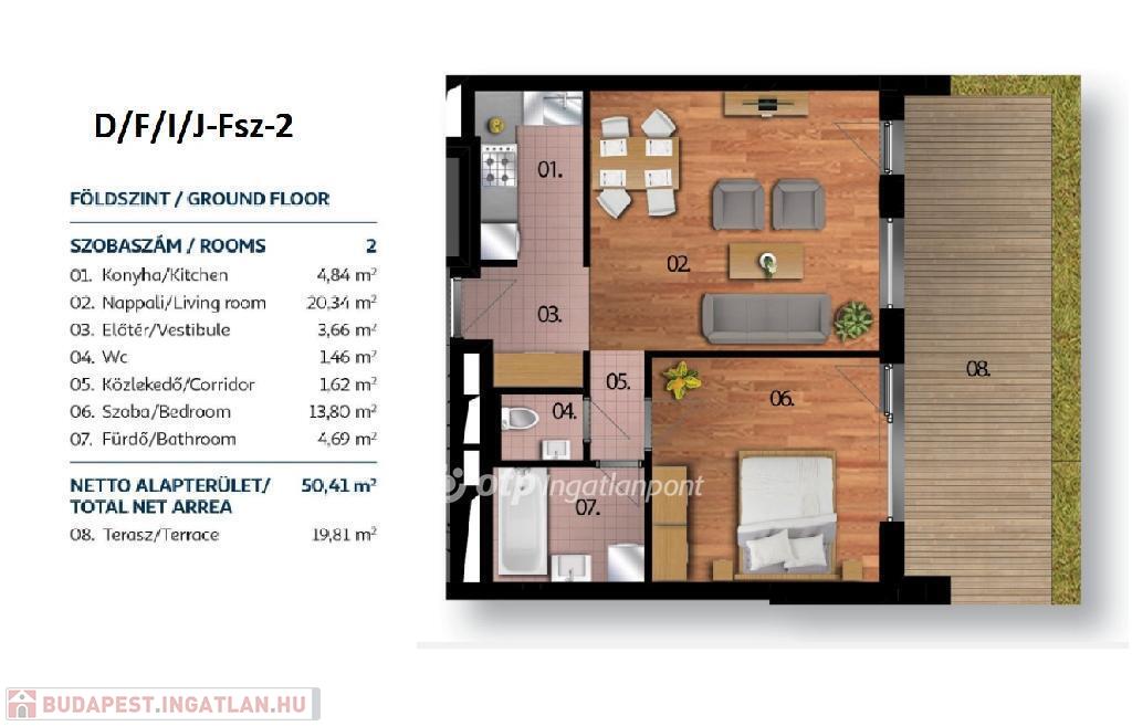 Lakások mérete: 49 nm-es, 2 szobás lakástól a 150 nm-es, 5 szobás és a tetőteraszos, exkluzív penthouseig.