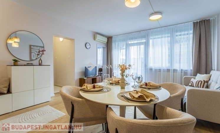 Az 46 m²-es, déli fekvésű, 2 szoba + 6m2 erkélyes ingatlan rendkívül világos és napsütötte. Az erkélyről kellemes, zöld területre nyílik a kilátás, ami mentesen az utca zajától. A lakás a közelmúltban teljes körű, magas színvonalú felújításon esett át. A villanyhálózat a mai elvárásoknak is megfelelő lett, a beltéri ajtók, minden burkolat és szaniterek cseréje is megtörtént. Az otthon jó minőségű, redőnyös, műanyag ablakokkal rendelkezik, klímával felszerelt. ű