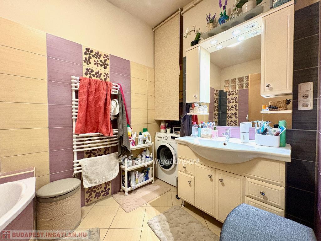 A lakáshoz a pinceszinten egy 6 nm-es zárható tároló is tartozik, amit a jelenlegi tulajdonos kamraként használ. A társasháznak van egy belső kertje, amit a lakók közösen gondoznak. Nagyon szép, csendes, nyári időszakban ki lehet ülni.