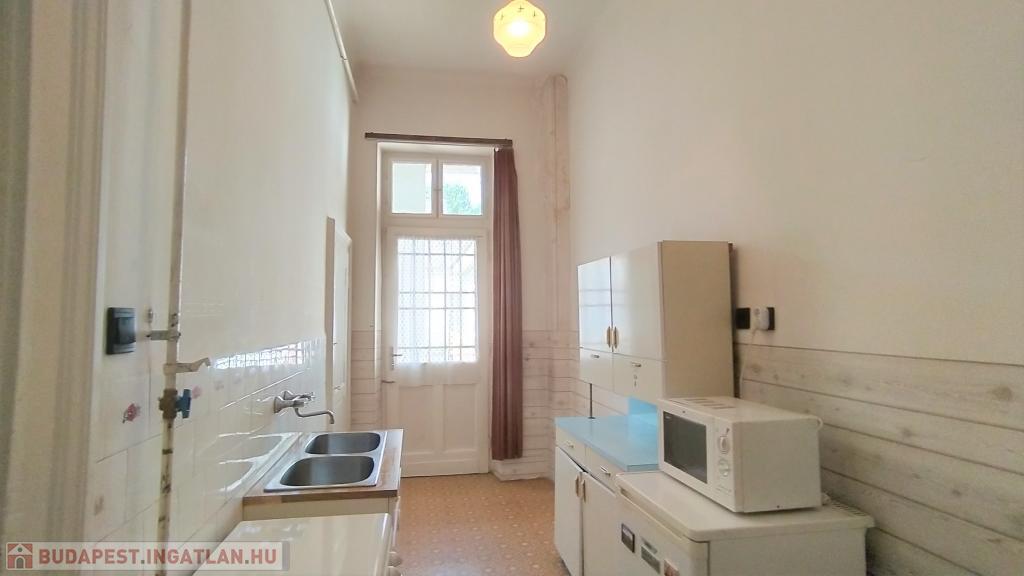 -konyha (11 m2), nyugati fekvésű, belső udvarra néző, a konyhába bejárati ajtó nyílik a függőfolyosóról, így akár 2 kisebb lakássá is alakítható