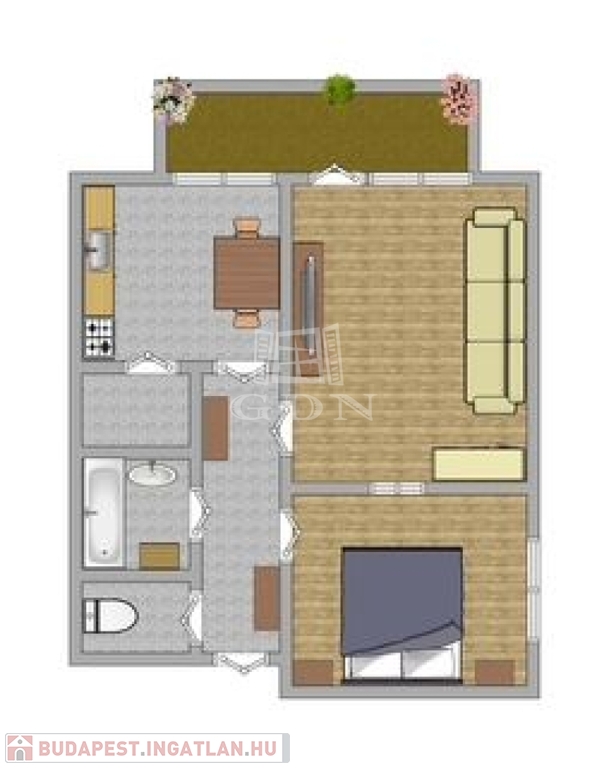 Ez a téglaépítésű ingatlan az 1. emeleten található és egy 7 négyzetméteres erkéllyel is rendelkezik.