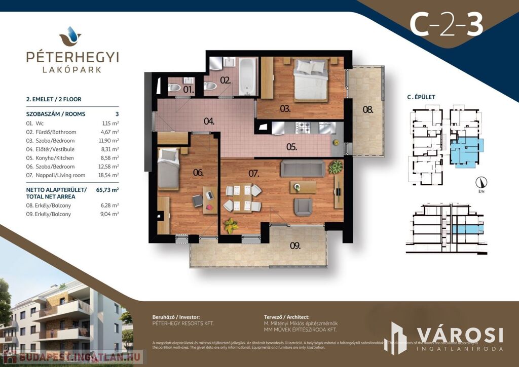 Alapterülete 65,73 m2 + 15,32 m2 erkély.