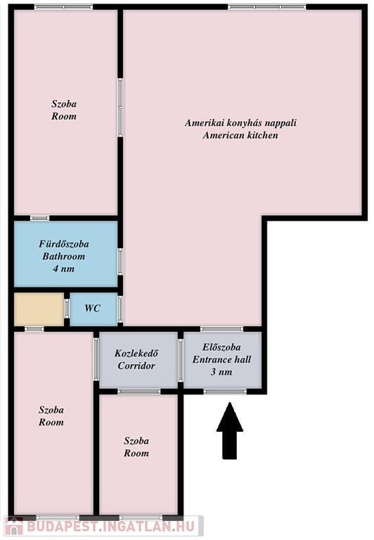 A lakás legnagyobb értéke a kiváló alaprajzi adottság, amely számos átalakítási lehetőséget rejt magában.