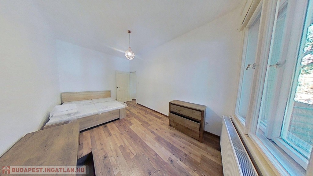 A lakáshoz tartozik a pincében 3,5 nm nagyságú zárható tároló, az épület belső udvarán közös használatban levő kertet is használhatjuk.