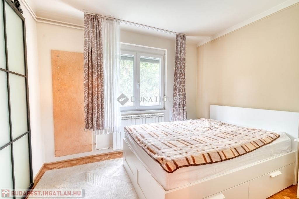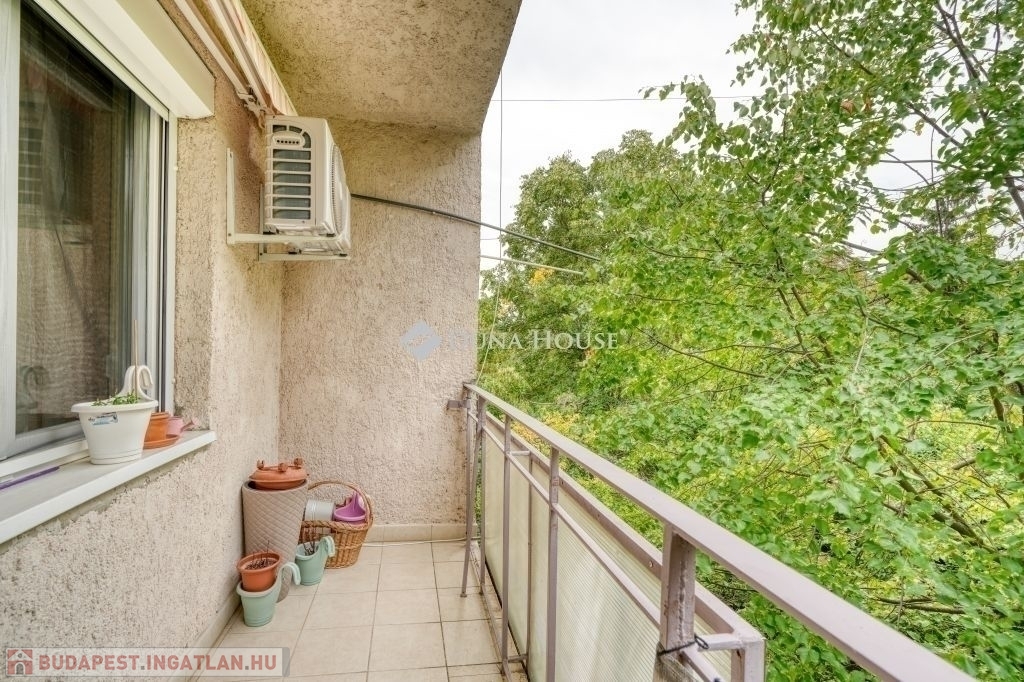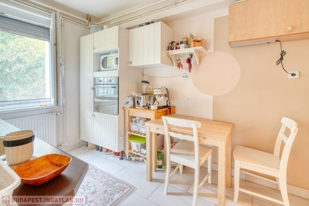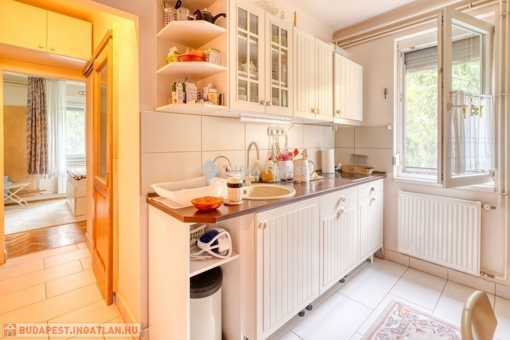 Eladó loggiás felújított tégla lakás a 12. kerületben  ősfás környezetbenA XII. kerület közkedvelt, csendes részén egy 3. emeleti,  lodzsás lakás most önre vár.53m2-es csendes, rendezett lakás eladó tehermentesen. Ideális otthon egy pár részére, kisebb családnak vagy egyedülállóknak. Frissítő levegőjű fás környezetben fogyaszthatja el reggeli kávéját.A lakás jellemzői:Belmagasság 2,6 m2Elosztás:ElőtérKonyha és étkező egybenKamraFürdőHálóNappaliKompakt teljes körű műszaki és esztétikai felújítás történt 2009-ben.Modern gázcirkó biztosítja a fűtést, egyedi mérőórákkal.Új hideg- és melegburkolatok. Műanyag nyílászárók, szúnyogháló és klíma gondoskodik a lakás gondtalan használatáról.Körbejárható elrendezése kellemes.Könnyedén és gyorsan kiadható.A társasház:Tégla építésű, 16 lakásos rendezett társasházTiszta, zárt lépcsőházElhelyezkedés, infrastruktúra:Közelben  boltok, óvoda, iskola, szolgáltatásokJó közlekedés :22, 22A, 222, 291-es buszok, 922, 922B éjszakai buszok megállói a közelbenFigyelemfelkeltő lehetőség mindazoknak aki egy kiváló adottságú, azonnal költözhető lakást keres a XII. kerület természetközeli részén. Keressen bizalommal, most!