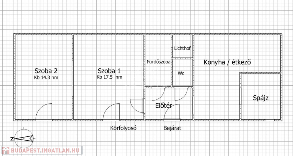 Az ingatlan praktikus elrendezésű: két szobával, kényelmes méretű étkezős konyhával, valamint kamrával rendelkezik. A fürdőszoba és a WC külön helyiségben kapott helyet, ami tovább növeli a lakás komfortját.