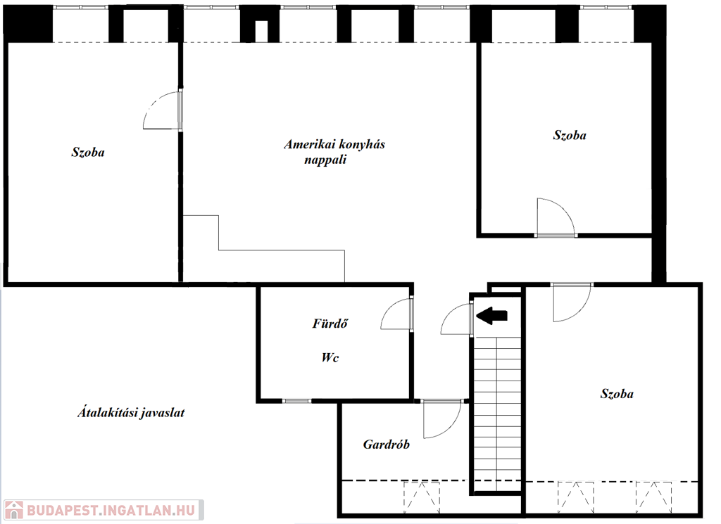 A felújítás során a lakás tovább is alakítható akár amerikai konyhás nappali + 3 hálószobássá. A képek mellett megtalálható a lakás alaprajza és átalakítási tervek is.