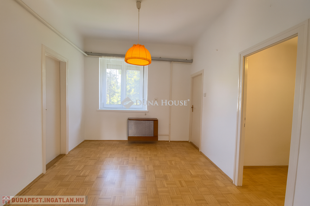 A Szent Orbán tér felett, közel a lüktető városhoz, mégis madárcsicsergős környezetben, zárt, ősfás parkban saját használatú kerttel, ide néző terasszal, világos, déli fekvésű, tégla építésű, 96 nm-es lakás eladó.A lakás egy 2 szintes, 4 lakásos épület felső emeletén található, melyet tágas, napfényes lépcsőházon keresztül közelíthetünk meg. Az ingatlanban 3 különnyíló szoba található, a nappaliból pedig a kertre néző teraszra juthatunk. A konyha ablakos, ezáltal világos, és egy kamra is nyílik belőle. A konyhát egy eddig étkezőnek használt helyiségből közelíthetjük meg, amelynek másik oldalán egy további tároló, valamint egy háztartási helység közelíthető meg.A gardrób helységből a fürdőszobát és az egyik hálószobát érhetjük el.A fürdőszoba felújításra szorul, ahol a wc elbontásra került,viszont könnyen visszaalakítható. Ezen kívül a bejáratnál egy vendég wc is a rendelkezésünkre áll.A lakáshoz tartozik és kötelezendően megvásárolandó egy 16 nm-es garázshely, egy felszíni kocsibeálló és egy 7 nm tároló, melyek együttes vételára 30 millió forint, amely az irányáron felül fizetendő.