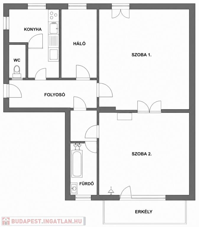 A lakásba érkezve egy jól használható előtér fogad, praktikus tárolási lehetőségekkel, ahonnan minden helyiség külön megközelíthető. A világos konyha, a kisebb háló, valamint a nagyobb tér a belső, zöld kert irányába néznek, így csendes és nyugodt életteret biztosítanak. Az ablakos fürdőszoba – amely ma már ritkább adottság – a ház másik oldalán kapott helyet.