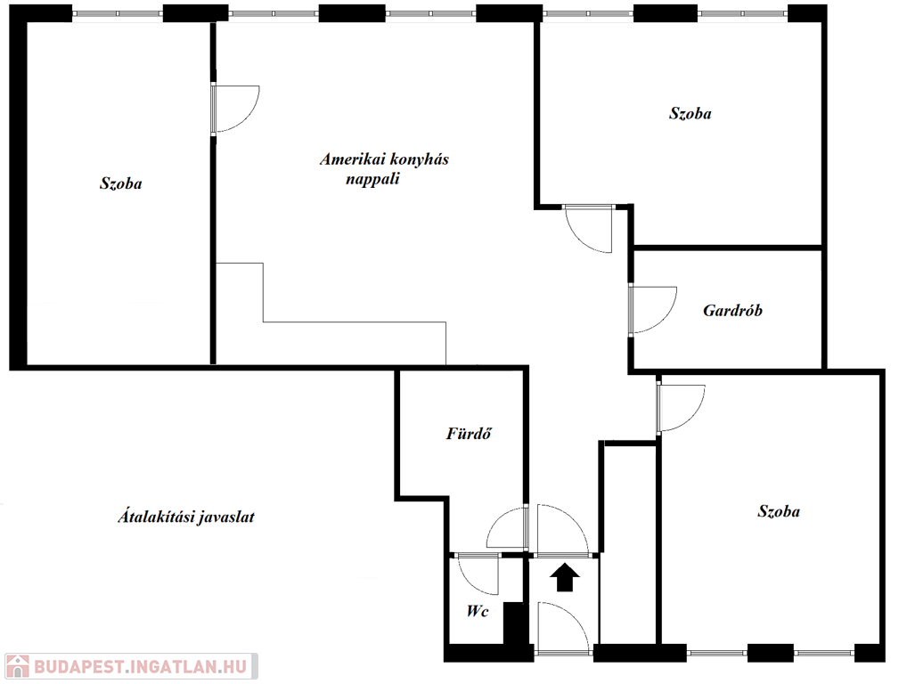 A felújítás során a lakás tovább is alakítható akár amerikai konyhás nappali + 3 hálószobássá. A képek mellett megtalálható a lakás alaprajza és átalakítási tervek is.