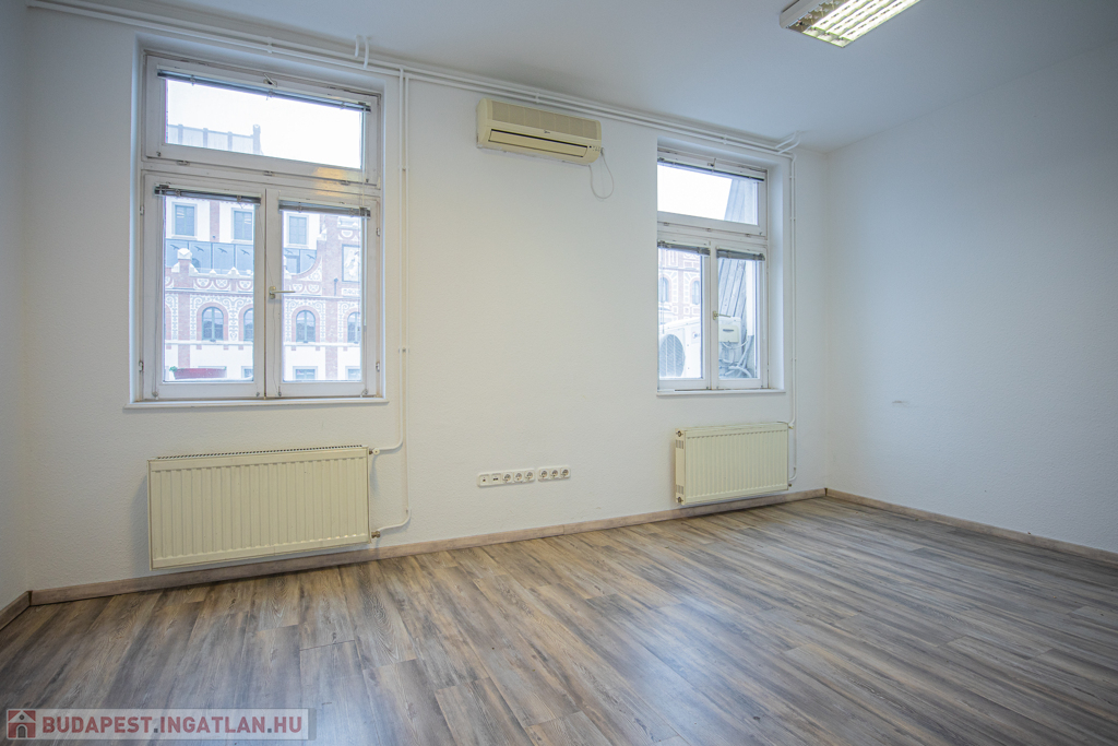A lakás kétfrontos, az ablakok a felújított Postapalota felé illetve a belső udvar felé is néznek.