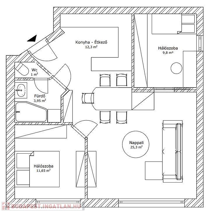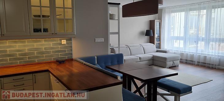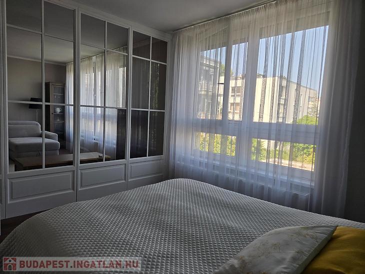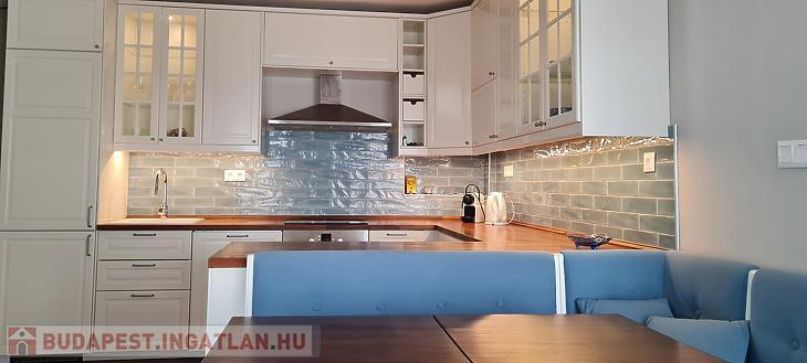 A lakás 64m2 alapterületű teljeskörű felújításon esett át, mind esztétikailag mind műszakilag megújult (fűtés, víz, elektromos hálózat). Az egyedi megjelenés igényes anyagokkal párosul. A téli időszakban a radiátoros fűtés egyedileg szabályozható, távolról is elérhető okos termosztátokkal vezérelt ami az épület új központi kazánházához csatlakozik. A hűtésről klímák gondoskodnak. A nyílászárók motoros redőnyökkel és rovarhálóval felszereltek. Az egyedi konyhabútor Bosch beépített háztartási gépekkel felszerelt. A lakás az épület 3. emeletén található, egyedülálló kilátással a városra. Tároló helyiség a földszinten áll rendelkezésre, kerékpár, babakocsi tároló a bejárat mellett.