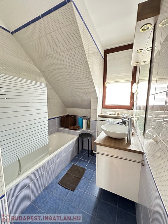 Tartozik hozzá a padlástérből a felette lévő rész, illetve egy 30 négyzetméteres garázs, elektromos kapunyitóval.