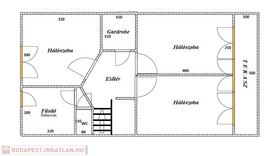 Mindenhol fa nyílászáró van, 2 rétegűek, a nappali tolóajtója pedig 3 rétegű üvegből készült. Mindegyik szúnyoghálós, es elektromos redőnyökkel ellátott.