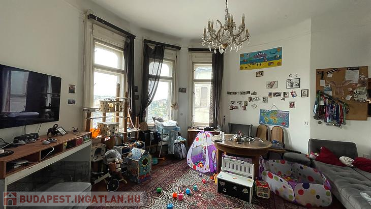 Krisztinavárosban, karbantartott társasházban, magas emeleti, napos, kelet-i és dél-i fekvésű, nagypolgári lakás.