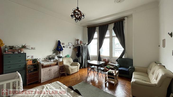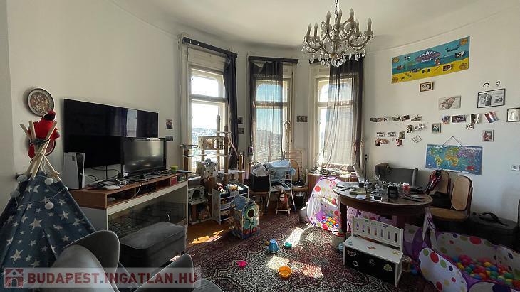 Krisztinavárosban, karbantartott társasházban, magas emeleti, napos, kelet-i és dél-i fekvésű, nagypolgári lakás.