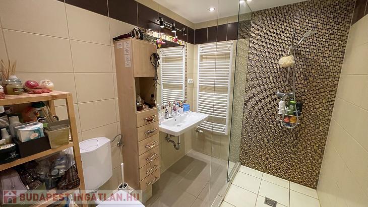 Szomszédságukban találjuk az épített zuhannyal és wc-vel szerelt fürdőszobát és a háztartási helységet, amelyből igény szerint még egy további fürdőszoba is kialakítható.